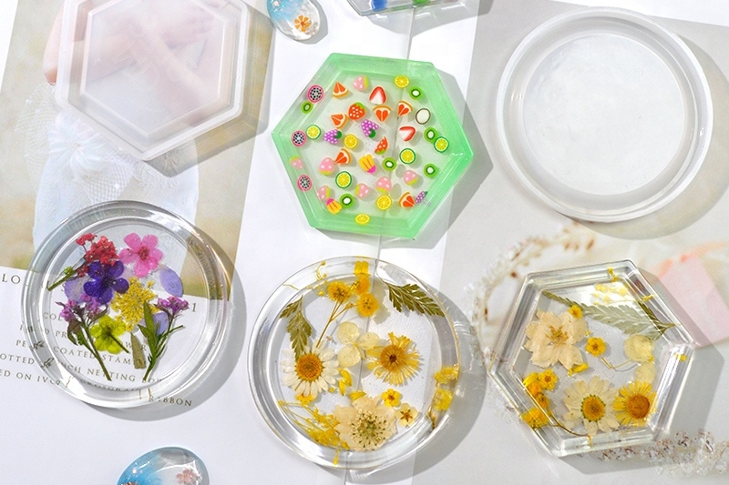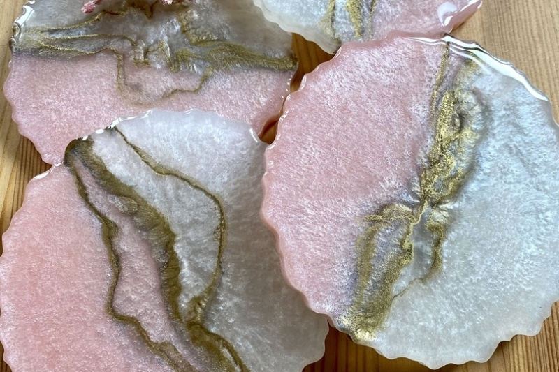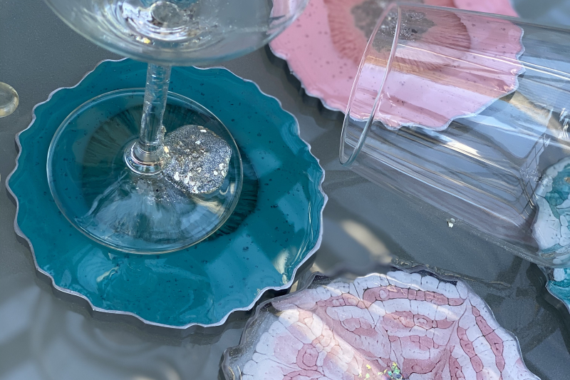 Podtácky z pryskyřice. I pro tyto výrobky používáme nejčastěji Silikonové formy na odlévání. Podtácky z pryskyřice ozdobí Váš stůl pod různé nápoje a máte na výběr z mnoha různých tvarů a dekorů silikonových forem. Podobné výrobky jsou etažéry z pryskyřice. I pro ně používáme nízké silikonové formy, jen ve větším rozměru. Při výrobě podtácků budete potřebovat pryskyřici pro nízké vrstvy, řídké nebo středně husté, nejlépe s certifikátem pro styk s potravinami. Ty najdete v kategorii Pryskyřice na podtácky a etažéry.