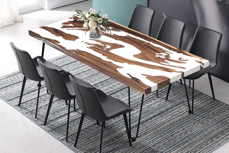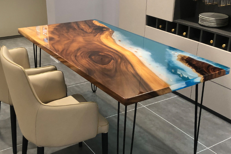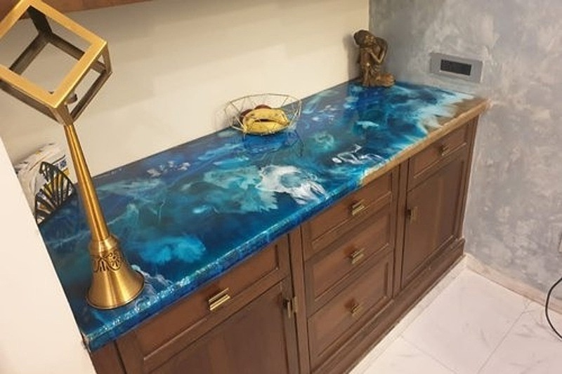Povrchy nábytku. Vytváření nových povrchů nábytku z epoxidové pryskyřice přináší řadu možností. Můžeme tímto způsobem renovovat staré poškozené povrchy na nábytku a nebo vytvoříme povrch na novém kusu nábytku, kterému chceme vtisknout určitý design nebo barevnost. Nový povrch z licí pryskyřice a pigmentů můžeme vytvořit na psacím stole, jídelním stole, komodě, konferenčním stolku nebo můžeme zalít pracovní desku kuchyňské desky. Pro tyto účely dodáváme vhodné pryskyřice, které se vyznačují velmi dobrou samonivelací (samovolný rozliv), UV odolností a vyšší tvrdostí. Pryskyřice pro tato účely najdete v kategorii Pryskyřice na povrchy nábytku a nebo pro vytváření povrchů na deskách kuchyňských linek pryskyřice s certifikací pro styk s potravinami v kategorii RenovaDesk program.