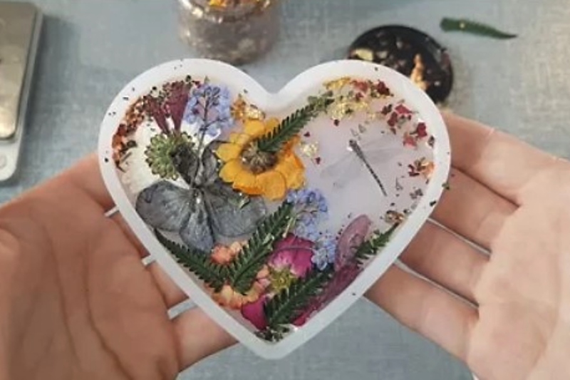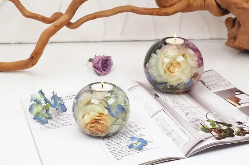 Zalévání květin do pryskyřice je velmi podobné výrobě dekorací s tím, že dekorační materiál, který vkládáme do pryskyřice jsou výhradě sušené květiny.