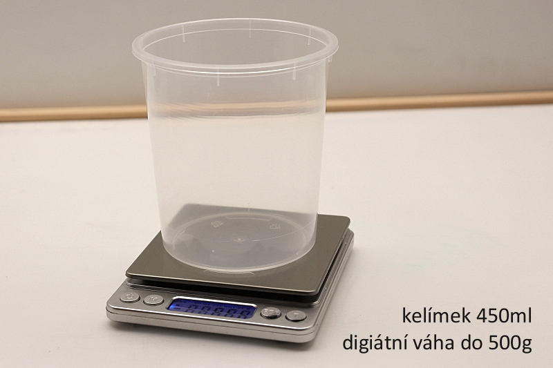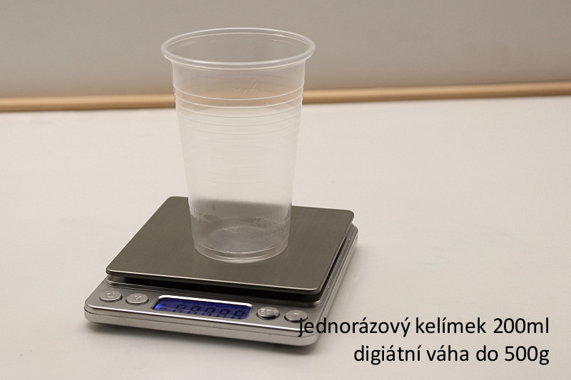 - Vždy TARE (vynulovat) váhu po vložení prázdného kelímku.