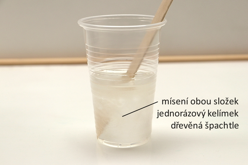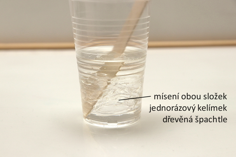 Pro správné vytvrzení licí pryskyřice je potřeba správně namíchat obě složky pryskyřice.