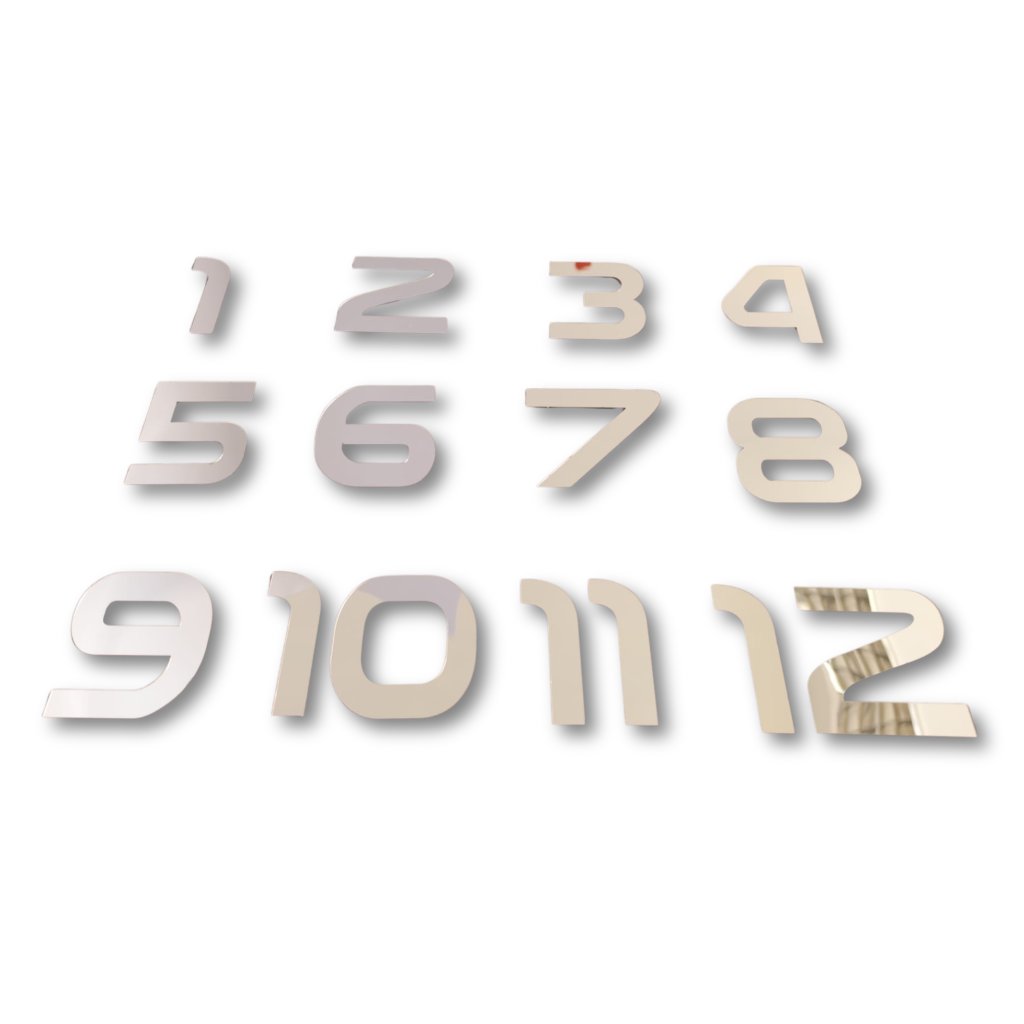 Plastová zrcadlová čísla výšky 82 mm jsou výbornou volbou pro všechny, kdo chtějí vytvořit velké, moderní a výrazné nástěnné hodiny. Zrcadlový povrch působí elegantně, luxusně a na ciferníku okamžitě přitahuje pozornost – ať už tvoříte z epoxidové pryskyřice, dřeva nebo hodinový ciferník lepíte přímo na stěnu.