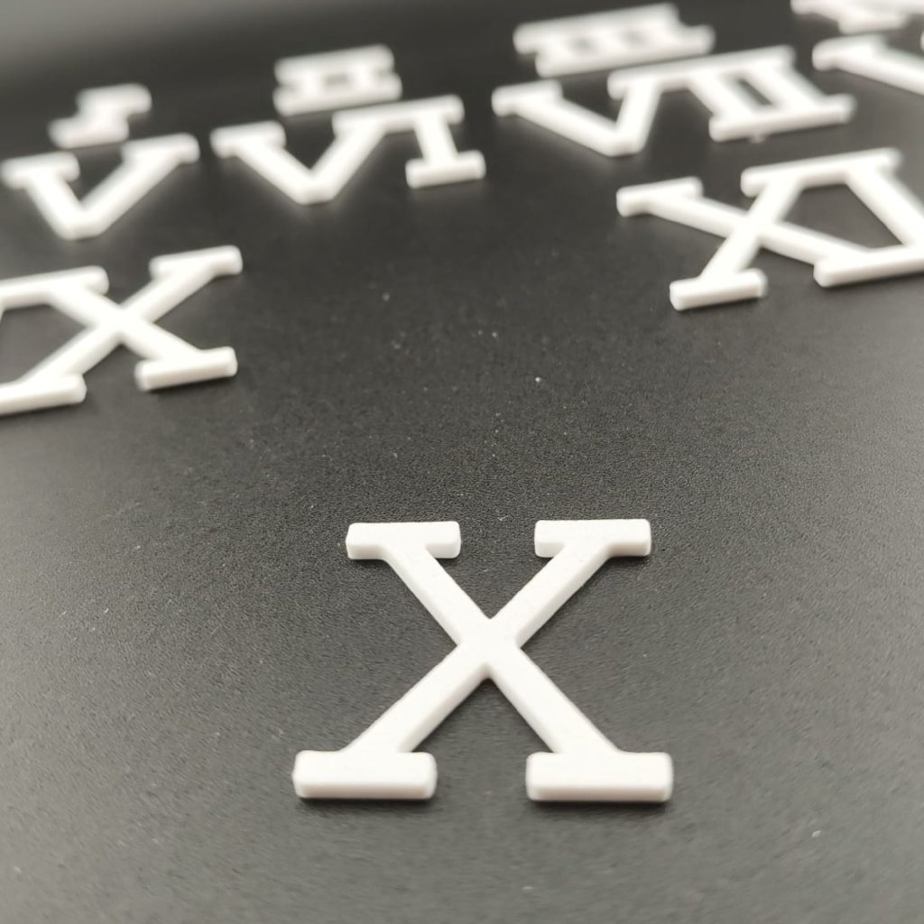 Bílá plastová římská čísla Dana 530 dodají vašim hodinám čistý, elegantní vzhled a přehledně čitelný ciferník, ať už tvoříte z dřeva, pryskyřice nebo mechu.