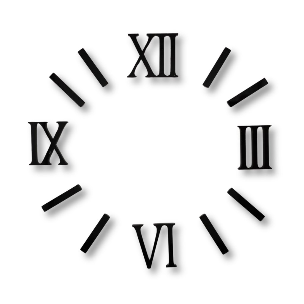Set je ideální všude tam, kde chcete spojit elegantní římská čísla s výrazným černým kontrastem. Černá čísla na světlém či barevném podkladu skvěle vyniknou a vytvoří z hodin výrazný designový prvek.