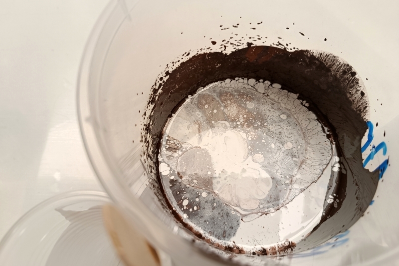 Připravte si zvlášť malou porci pryskyřice s bílým pigmentem a lehce ji vtáhněte do základní hnědé směsi vlnivými tahy.