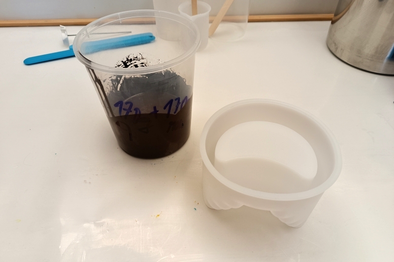 - Odlévejte do čisté silikonové formy; poklepáním a tenkým litím pomůžete úniku vzduchu.