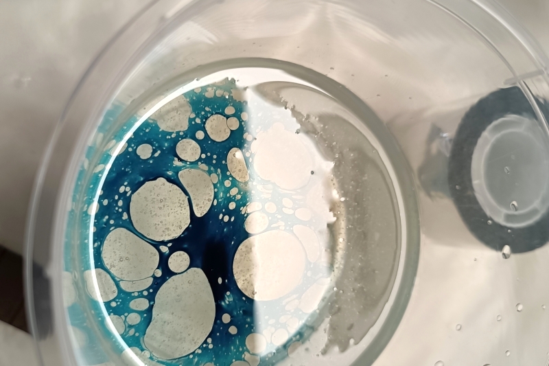 - Oddělení barev: přidejte ~1 % NON LIQUID do barevných porcí – omezí prolnutí a „vytečení“ pruhů.