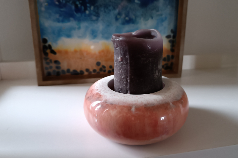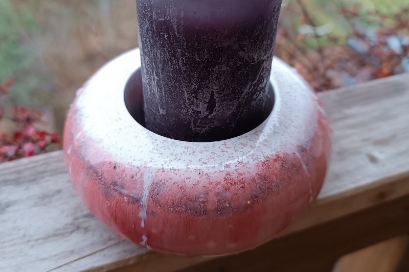 7. Vyjmutí ze silikonové formy. Po 48 hodinách jsme náš svícen vyjmuly z formy. Doporučujeme vyjmutí provést pod vlažnou tekoucí vodou. Roztáhneme okraje formy a vodu necháme vtékat dovnitř dokud celý výrobek nevyjmeme ven z formy. Formu doporučujeme omýt mýdlovou vodou (více v článku Jak se starat o silikonové formy), nechat vyschnout a uložit.