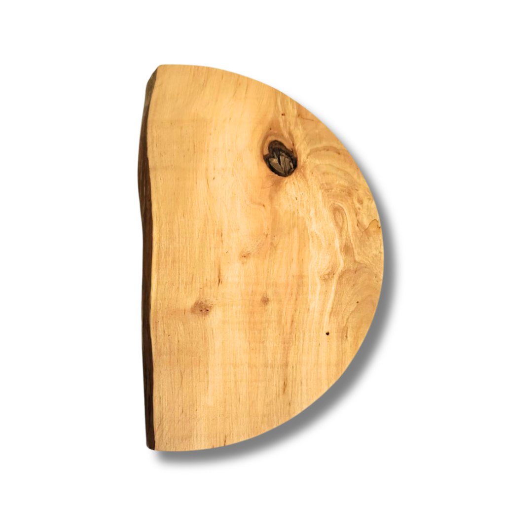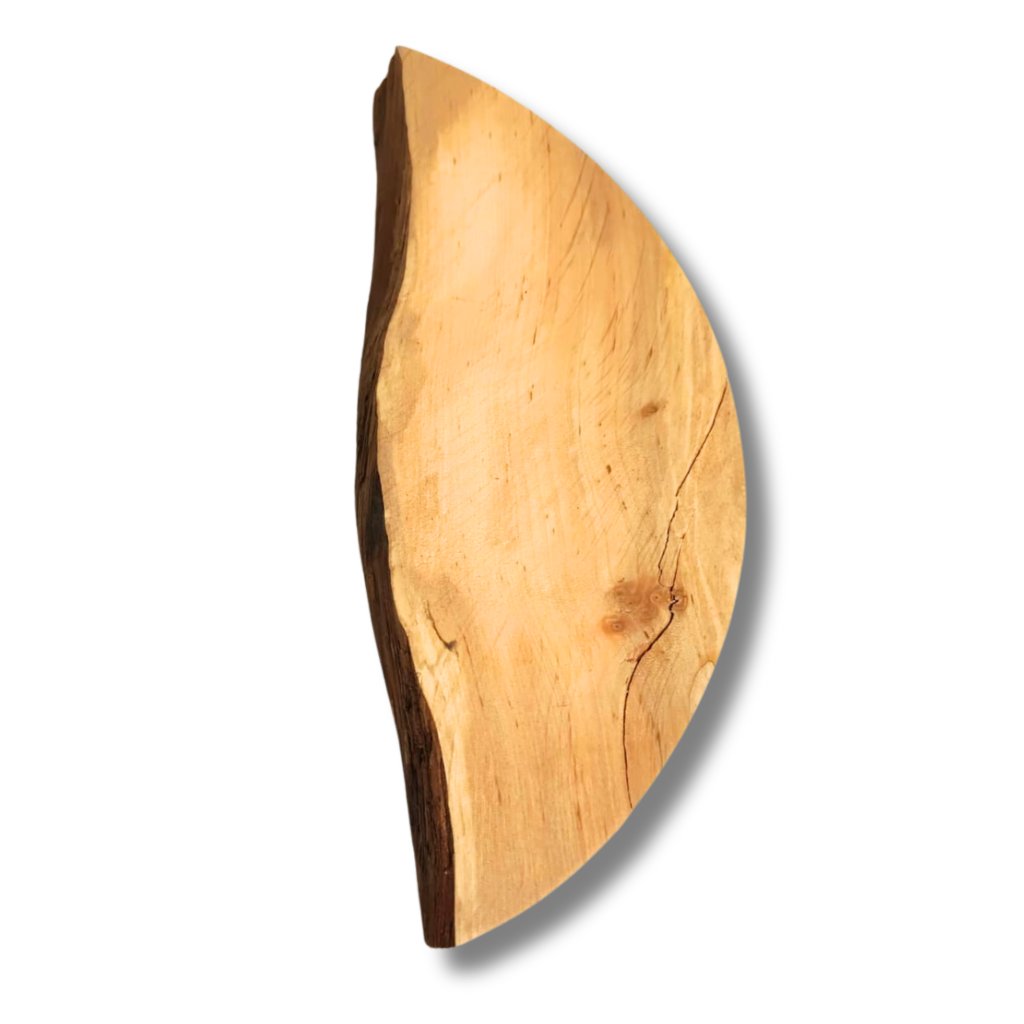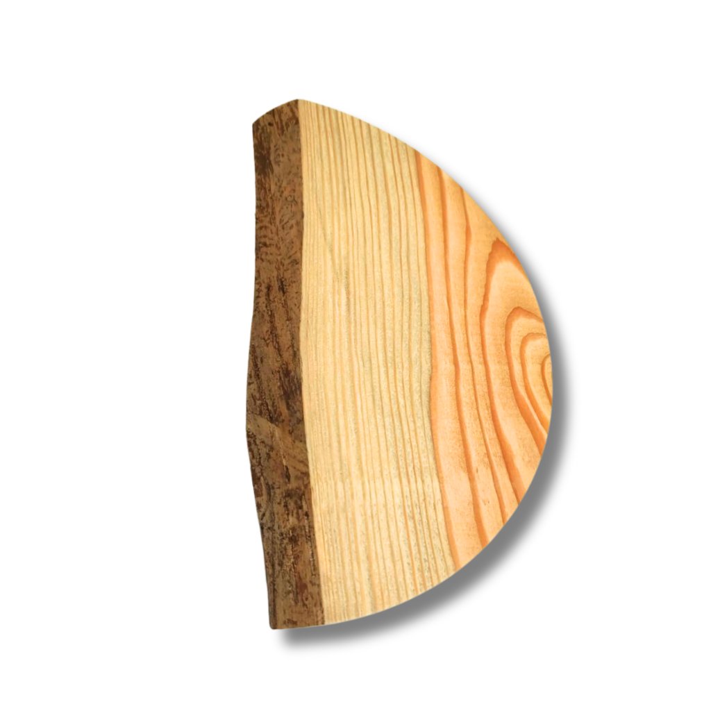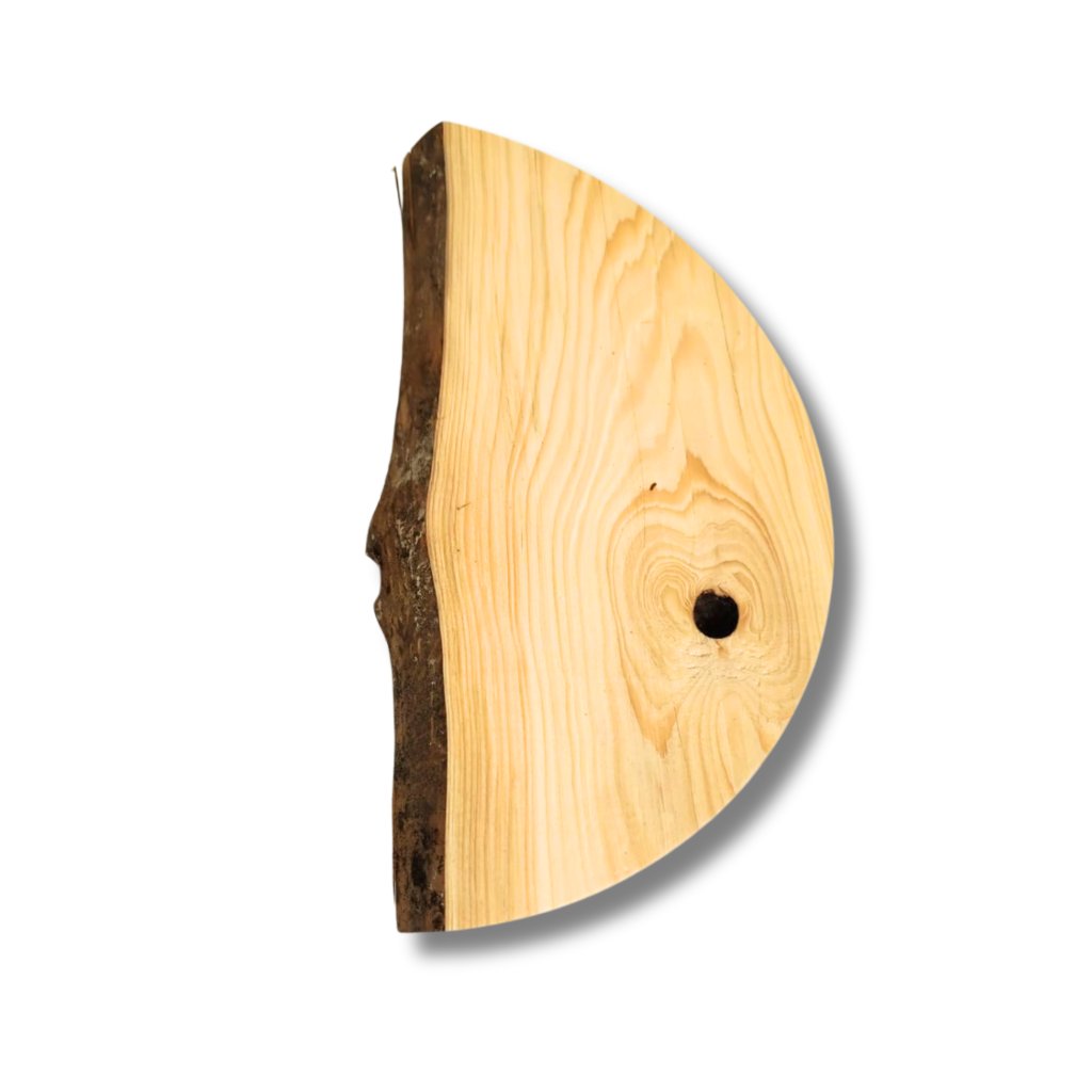 Tato okrajová kruhová výseč ve tvaru půlměsíce má vnější průměr cca 30 cm a je ideální pro menší dekorace. Každý kus je jedinečný – může mít rovnější nebo více přírodní okraj, někdy i se zbytky kůry. Díky tomu působí velmi autenticky a skvěle se hodí ke kombinaci s mechem, pryskyřicí nebo dalšími přírodninami.