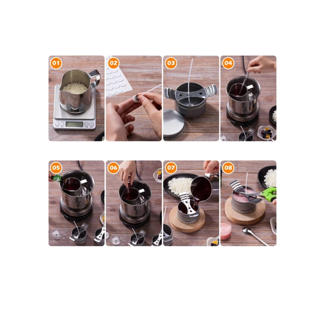 Držák knotu usnadní správné umístění a fixaci bavlněného knotu na dně formy nebo nádoby.