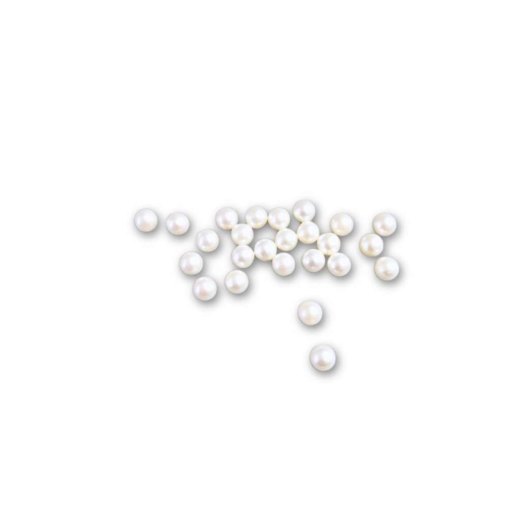 Decorative beads in pearlescent white without a hole are suitable for creative crafting, decorating decorations, and working with resin. At first glance, they may resemble pearls, but they are not intended for stringing as they lack a hole for threading. They are perfect as a decorative element for castings, jewelry, bowls, coasters, and other original products.