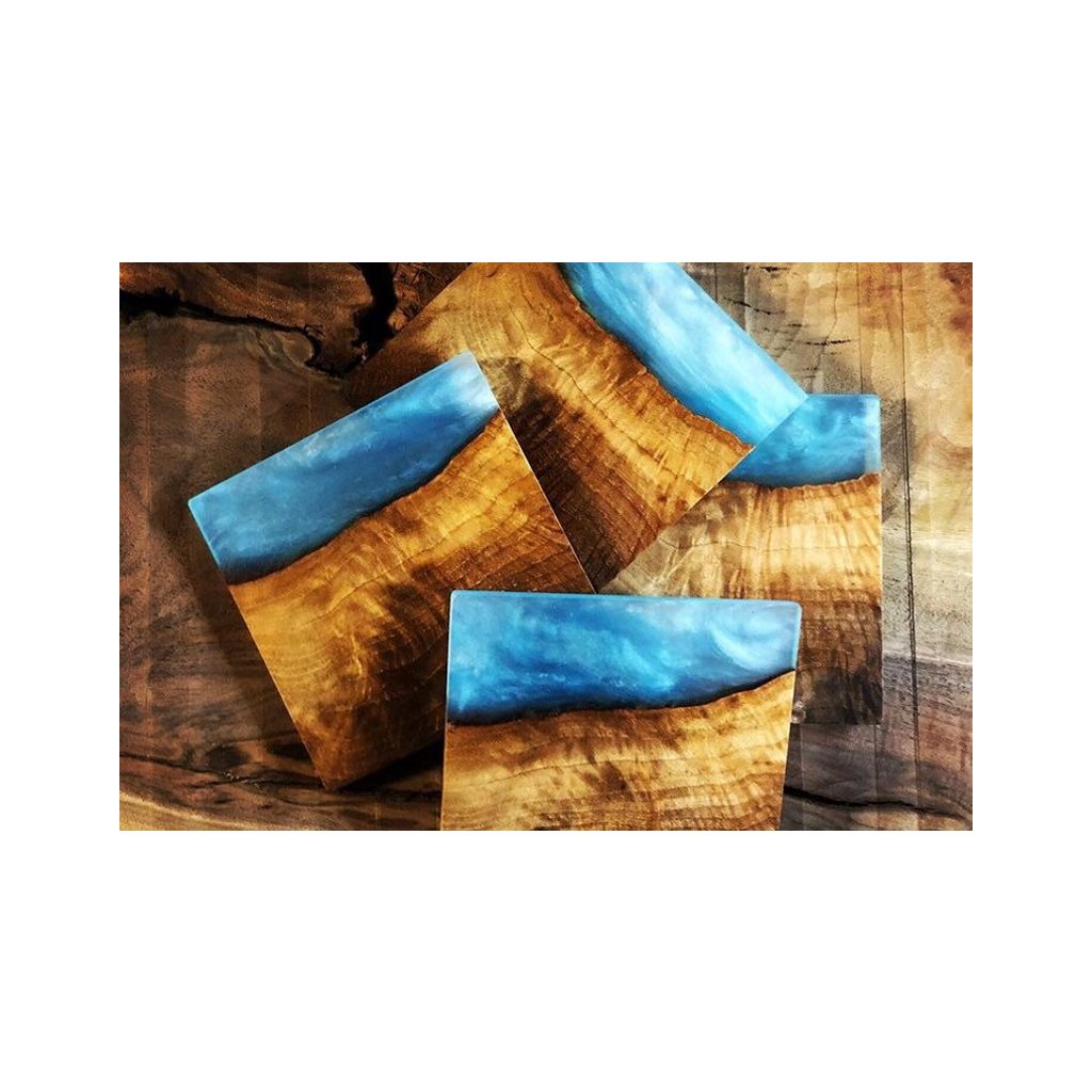 - Další dekorace a truhlářské výrobky v kombinaci dřevo + pryskyřice