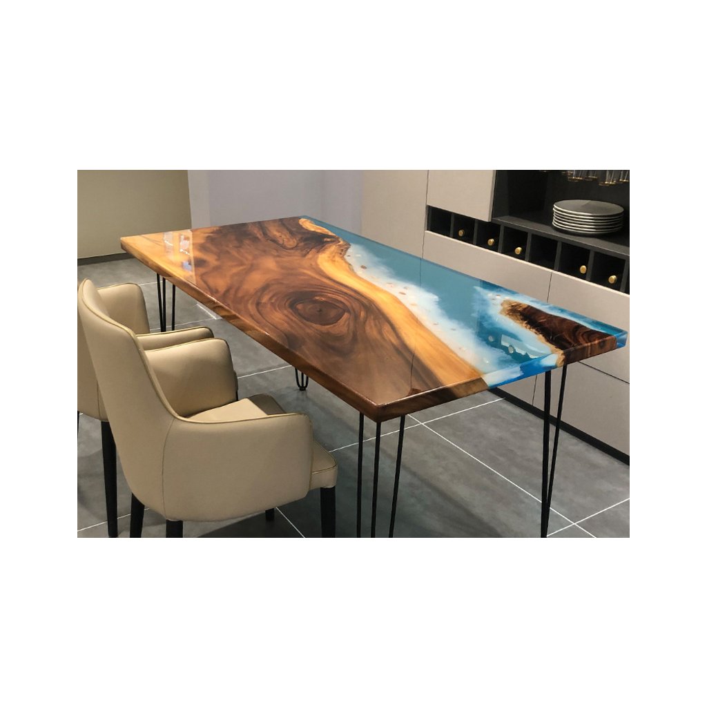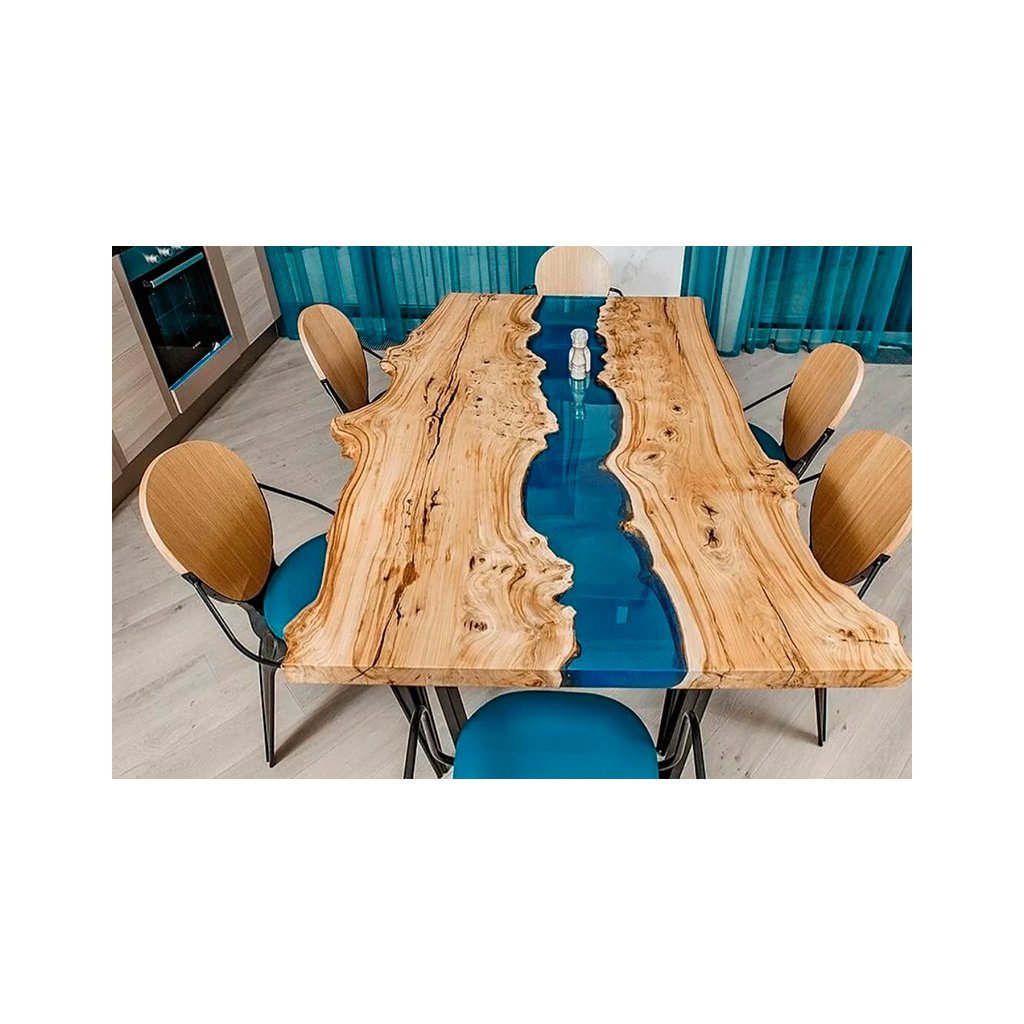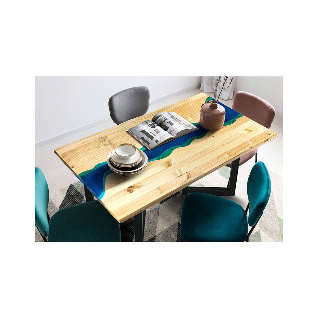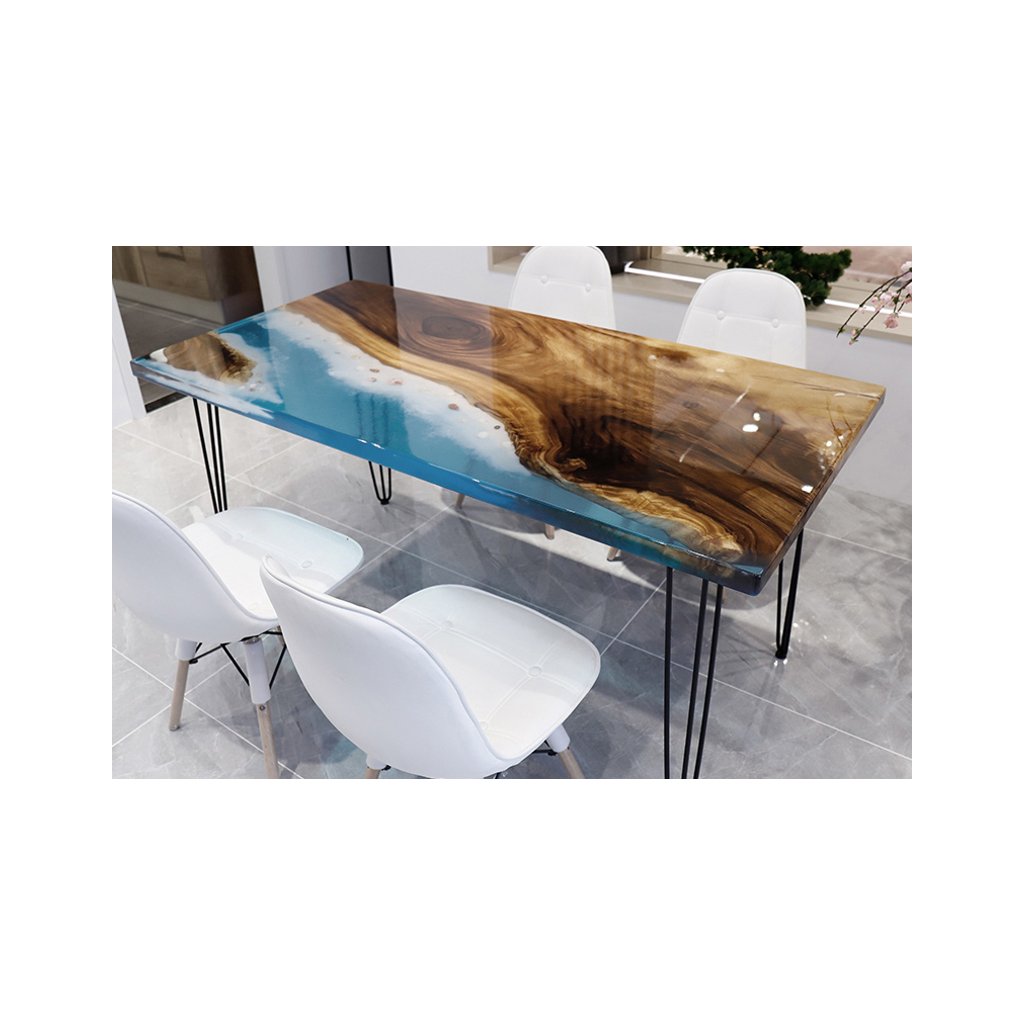 - Stoly z pryskyřice – „river“ stoly, menší stolky, desky