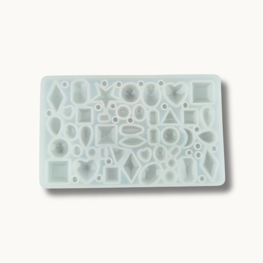 Silikonová forma na šperky – mix mini tvarů (107×65 mm) pro rychlou výrobu přívěsků a náušnic. Hladký povrch pro lesklý finiš, snadné vyjímání a opakované použití s epoxidovou pryskyřicí.