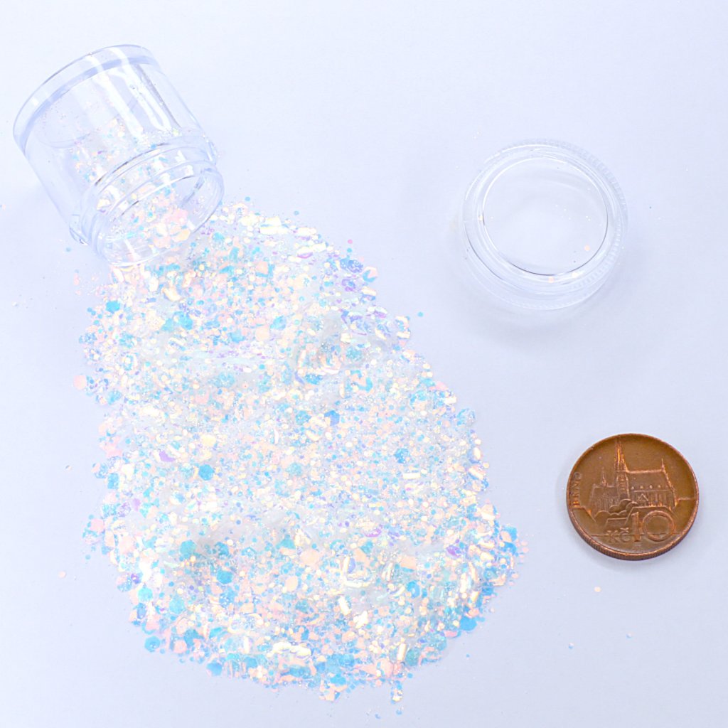 Holografický glitter je sypký materiál v malých vločkách a označení holografický znamená, že se v gliteru láme specifickým způsobem světlo, a vznikají tak barevné přechody. Glitr do pryskyřice má velkou oblibu zejména na šperky z pryskyřice a dekorace z pryskyřice. Glitry přidáváme do licí pryskyřice v potřebném množství.