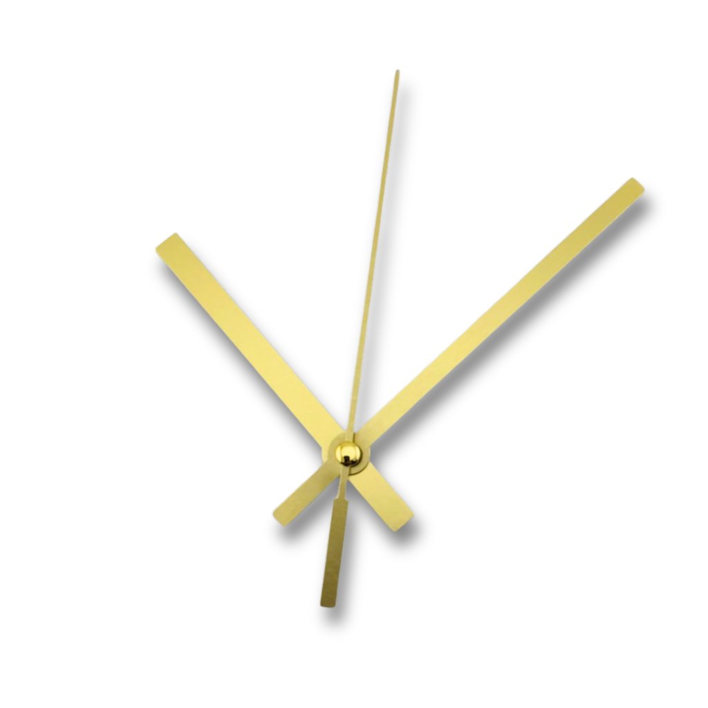 Pokud hledáte zlaté hranaté ručičky s vteřinovkou pro moderní hodiny z pryskyřice, mechu nebo dřeva, tato sada 100/70 je skvělou volbou pro čistý a přehledný ciferník.