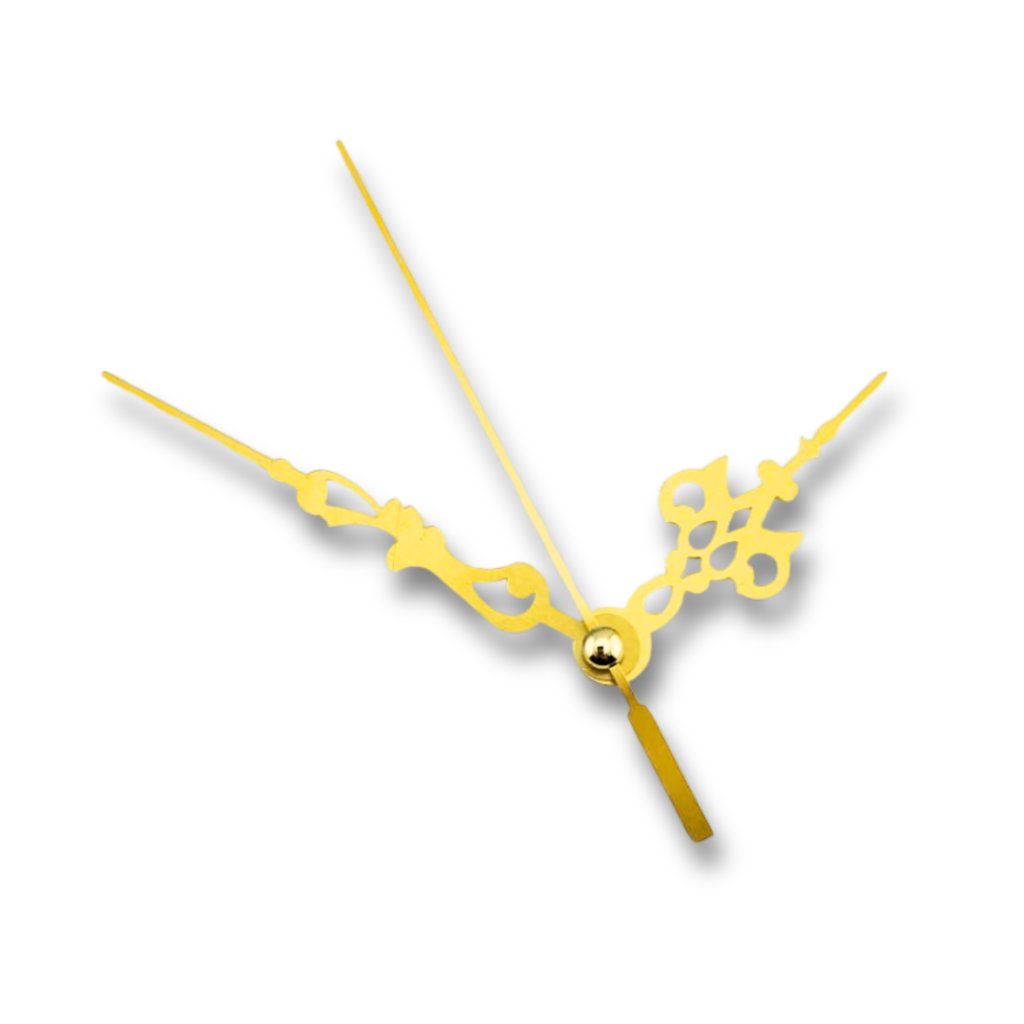 Tyto zlaté hodinové ručičky Rustikální 3 s vteřinovkou jsou ideální volbou, pokud chcete svým autorským hodinám dodat elegantní, výrazný a ručně vyráběný charakter – ať už pracujete s dřevem, pryskyřicí, mechem nebo dalšími kreativními materiály.