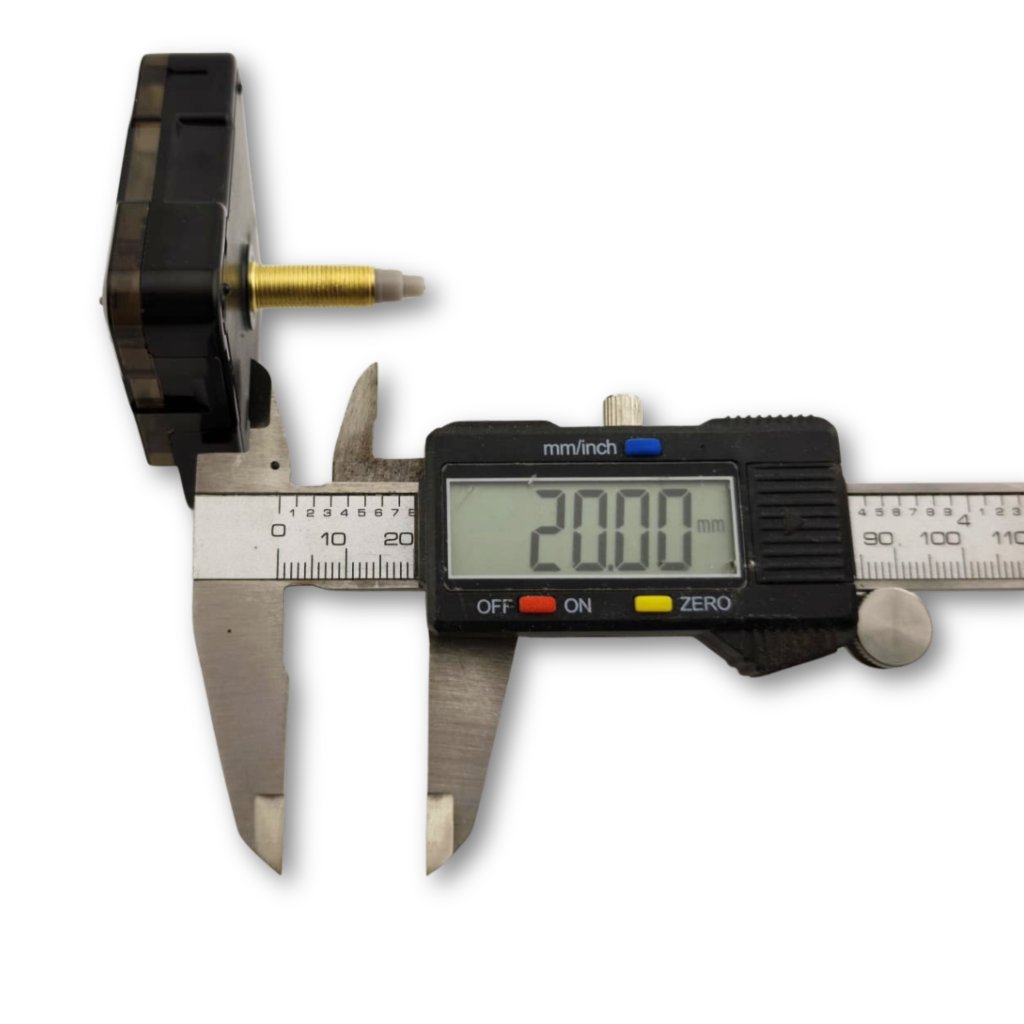 Tichý hodinový strojek s příslušenstvím – závit 20 mm je skvělou volbou pro všechny, kdo vyrábějí hodiny z epoxidové pryskyřice, dřeva, mechu nebo kombinovaných materiálů. Délka závitu cca 20 mm je ideální pro středně silné ciferníky, kde je klasický krátký závit nedostatečný, ale extrémně dlouhý závit by zbytečně vyčníval.