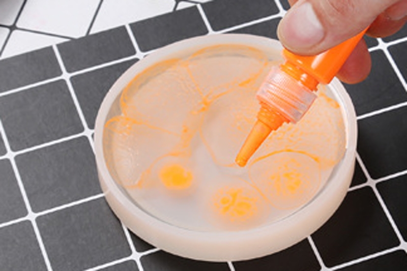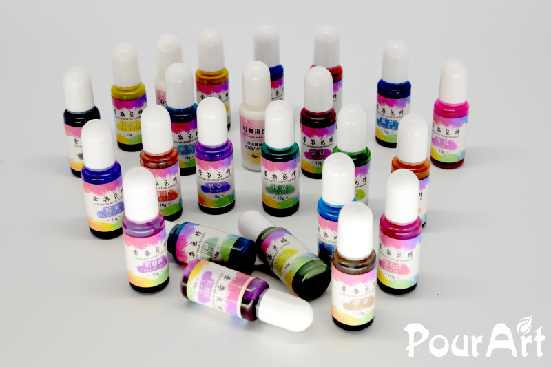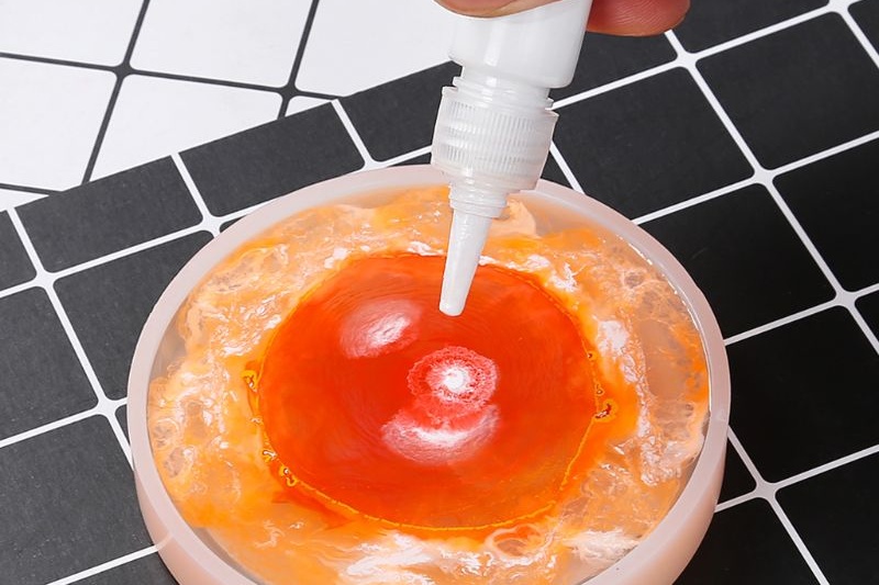 Difuzní pigmenty se kapou přímo do pryskyřice z lahvičky nebo pomocí pipety. Pigmenty je ideální mezi sebou mísit a "vkapávat" jeden do druhého.