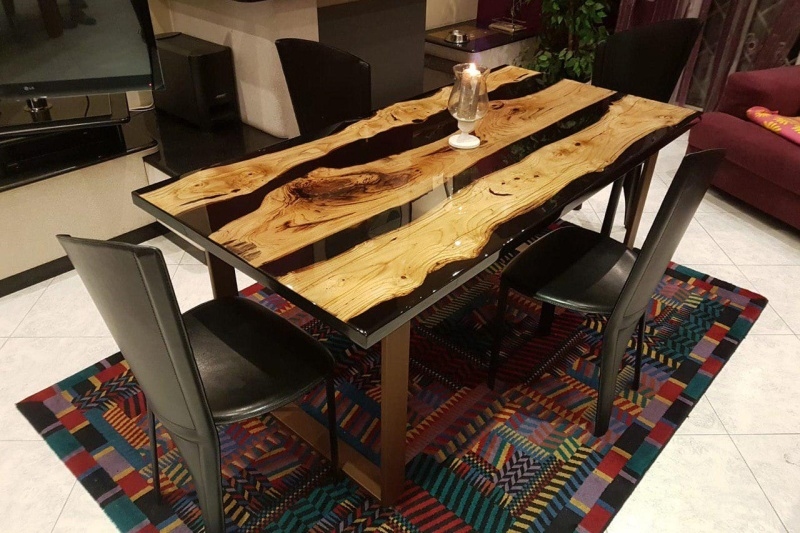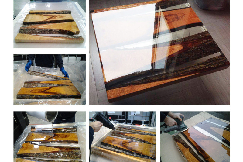 Příklady využití: podtácky z pryskyřice, nábytek z pryskyřice, jídelní stůl z pryskyřice, barové pulty, kuchyňské desky, kuchyňské linky, prkénka zalitá pryskyřicí, podnosy zalité pryskyřicí, dekorace z pryskyřice a další výrobky z pryskyřice
