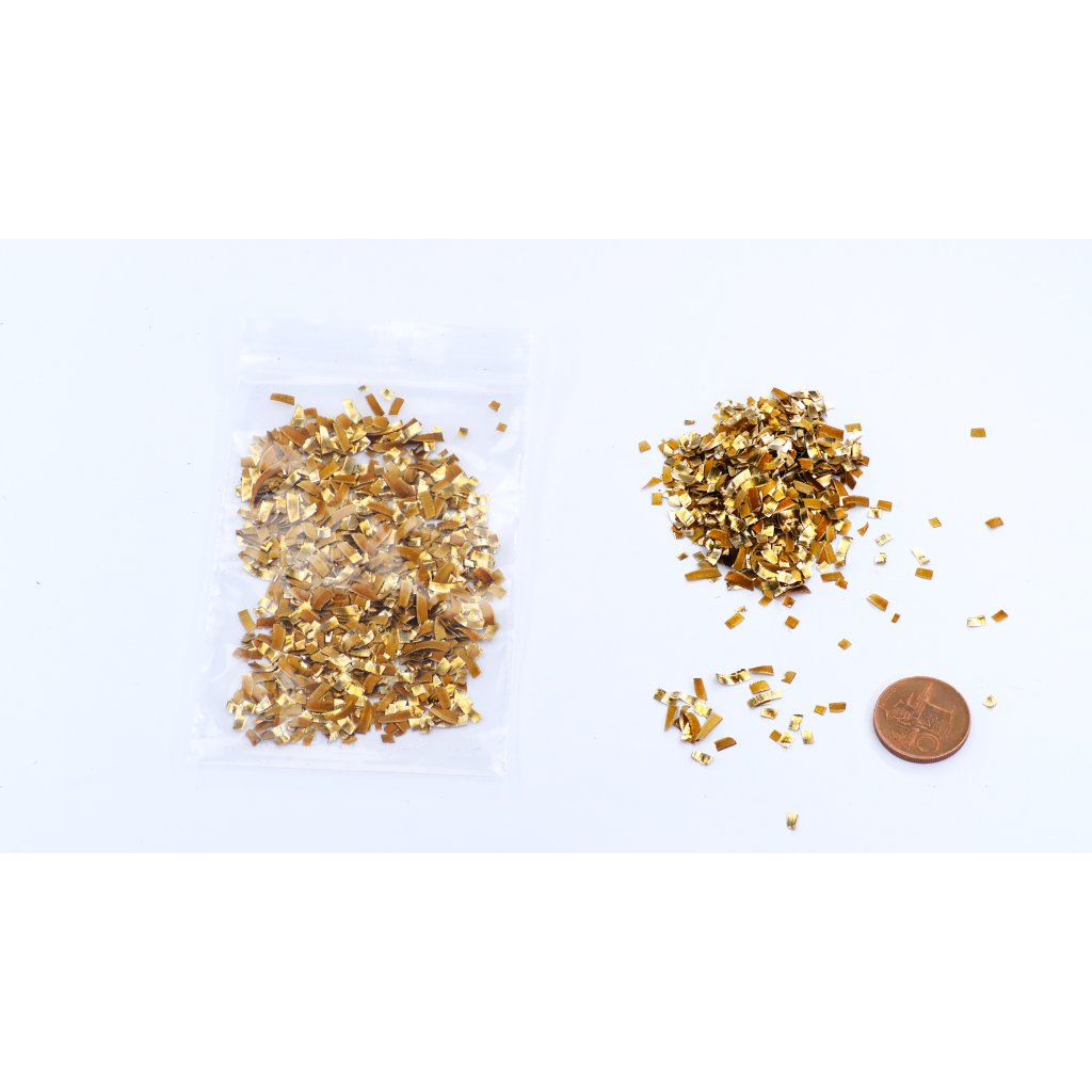 Jde o drobné úlomky původně spirálovitých špon, které vznikly zpracováním kvalitní bronzové slitiny. Křehkost materiálu vedla k jejich přirozenému zlomení do kratších a lépe použitelných tvarů, ideálních pro práci s pryskyřicí. Díky této formě se snadno rozkládají ve formě a umožňují přesné dávkování.
