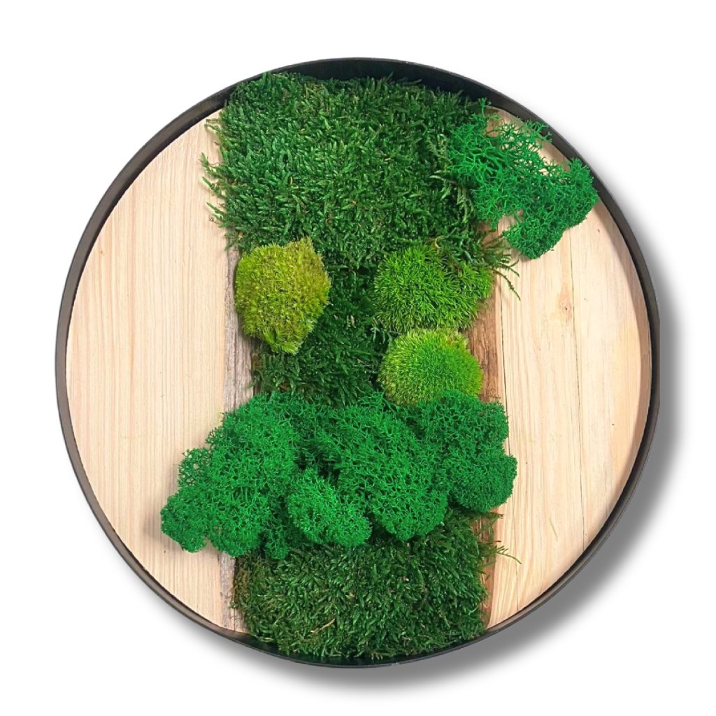 Kreativní sada – mechový obraz s okrajovými výseky je navržená pro všechny, kdo si chtějí sami vytvořit moderní přírodní dekoraci na zeď. Kulatý mechový obraz skvěle doplní jak minimalistický, tak přírodně laděný interiér a díky stabilizovaným mechům nevyžaduje žádnou speciální péči.