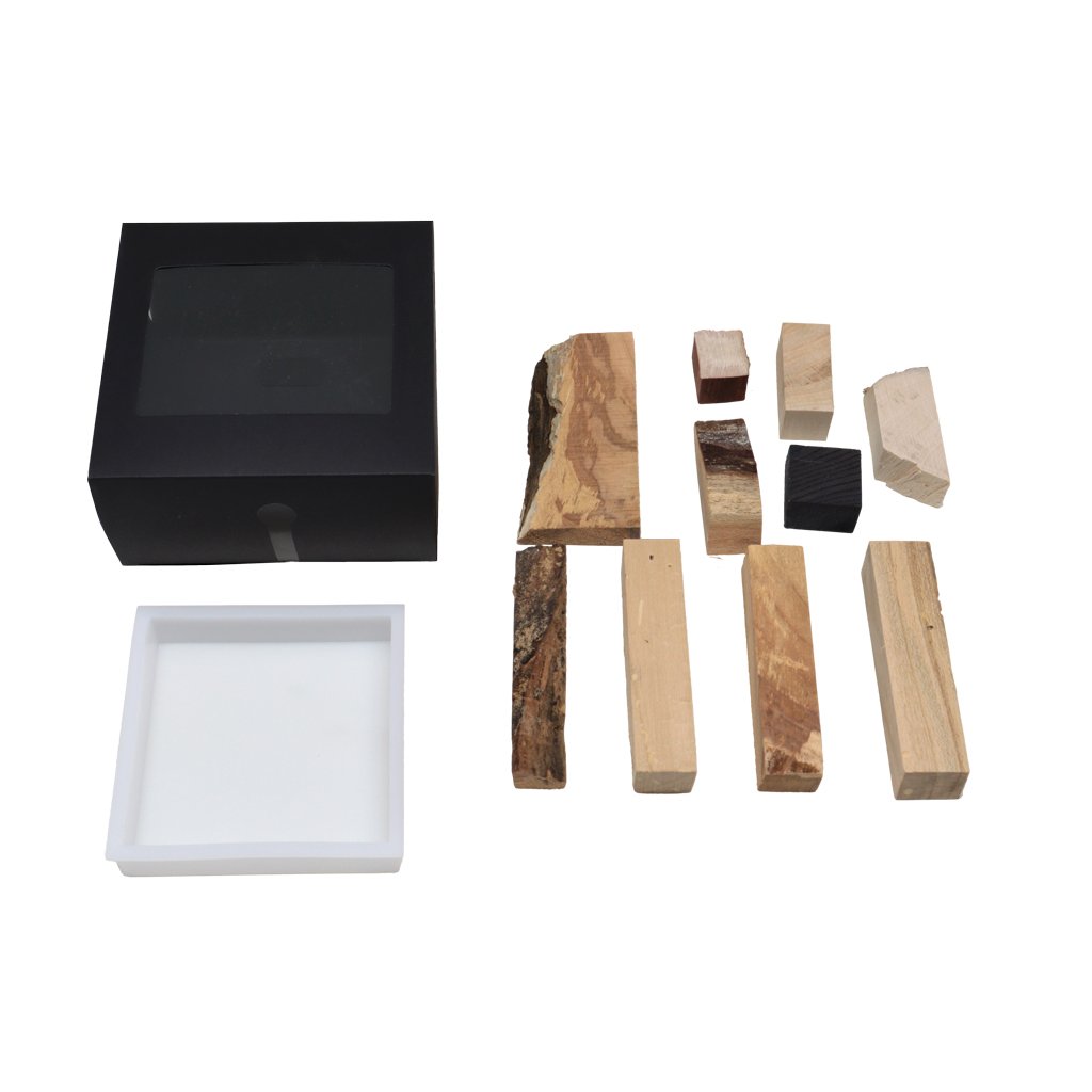 Sada obsahuje: 10 kusů náhodně vybraných špalíčků dřeva + silikonovou formu pro zalití dřevěných špalíčků