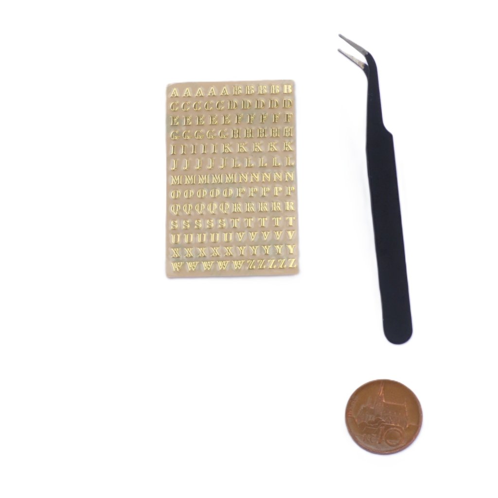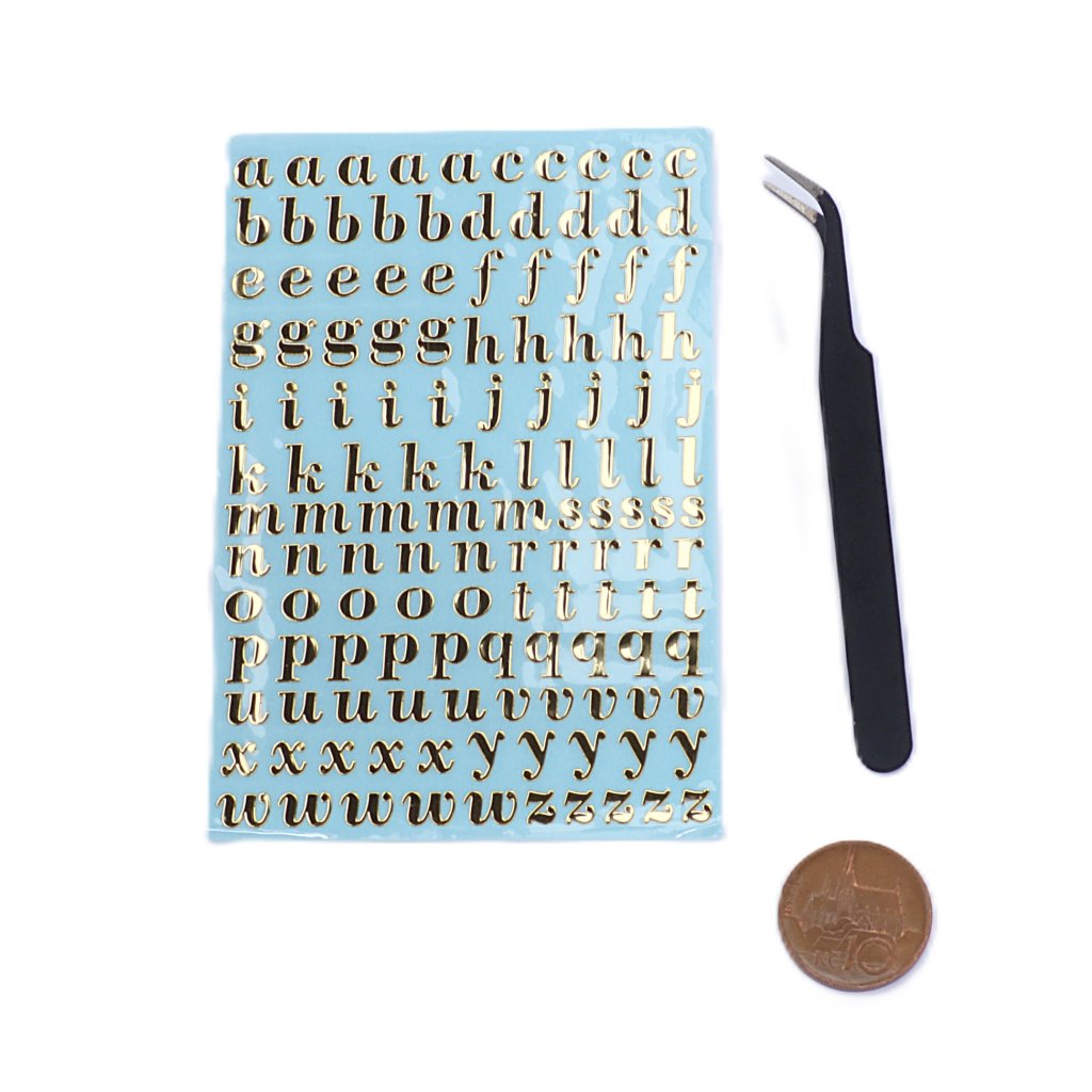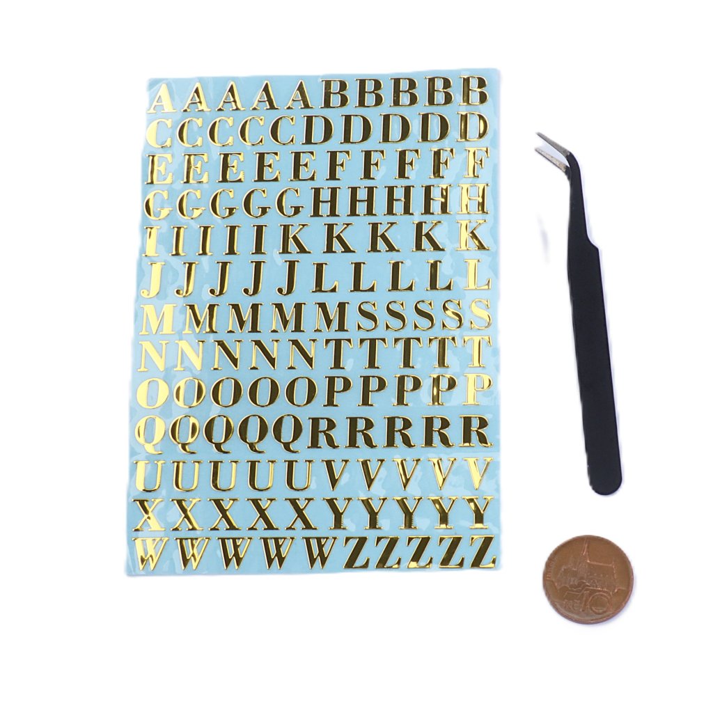 Samolepicí archy obsahují písmena o výšce 9, 7, 5 a 3,5 mm, která jsou perfektní pro výrobu dekorací z pryskyřice. Lesklý kovový povrch dodává výrobkům elegantní a luxusní vzhled.