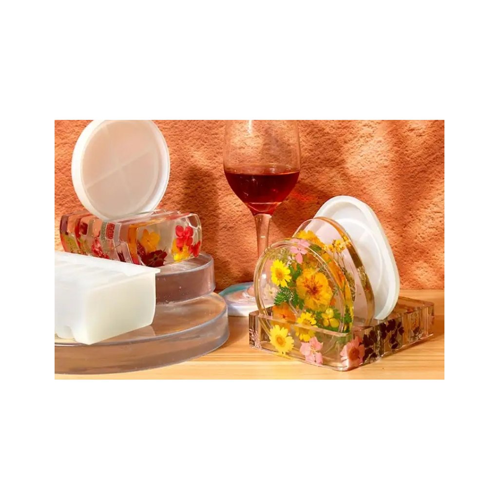 Silikonová forma na podtácek je pružný silikonový materiál, který drží tvar při odlévání a vytvrzený výrobek z pryskyřice jde snadno "vyloupnout".