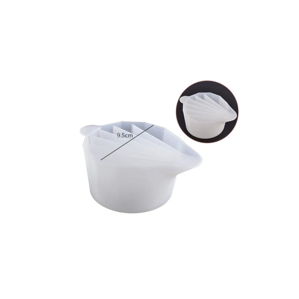 Silikonový kelímek pro souběžné lití umožňuje každou komoru naplnit pryskyřicí v jiné barvě a lít tyto barvy souběžně vedle sebe. Souběžného lití barev využijeme při tvorbě obrazů, geodeart, podtácků nebo dekorací. Kelímek na souběžné lití je opakovatelně použitelný, po vytvrzení pryskyřice lze tyto zbytky snadno vyloupnout. Kelímek pro souběžné lití lze použít i pro práci s akrylovými barvami - fluid art.