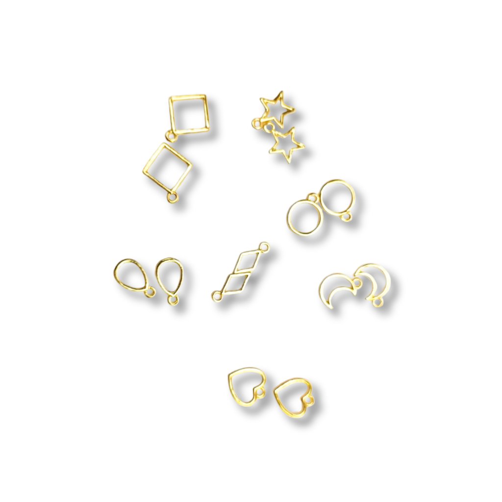Tato sada obsahuje 7 párů rámečků v různých tvarech, díky kterým můžete vytvářet rozmanité šperky i dekorace. K dispozici máte kruh, čtverec, hvězdu, kosodélník, kapku, půlměsíc a srdce, takže snadno zkombinujete jednoduché geometrické motivy i jemnější romantické tvary.