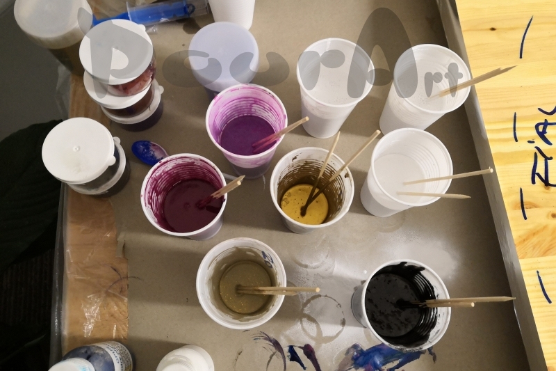 Pro vyhotovení obrazu z pryskyřice jsme použili dřevěnou desku ze spárovky o rozměru 90 x 60cm a licí pryskyřici Lente portreto. Pro lepší rozliv pryskyřice jsme povrch penetrovali. Penetrace pod epoxidové pryskyřice PA-VP je dvousložková penetrace na bázi epoxidů a po smíchání je bělavá.