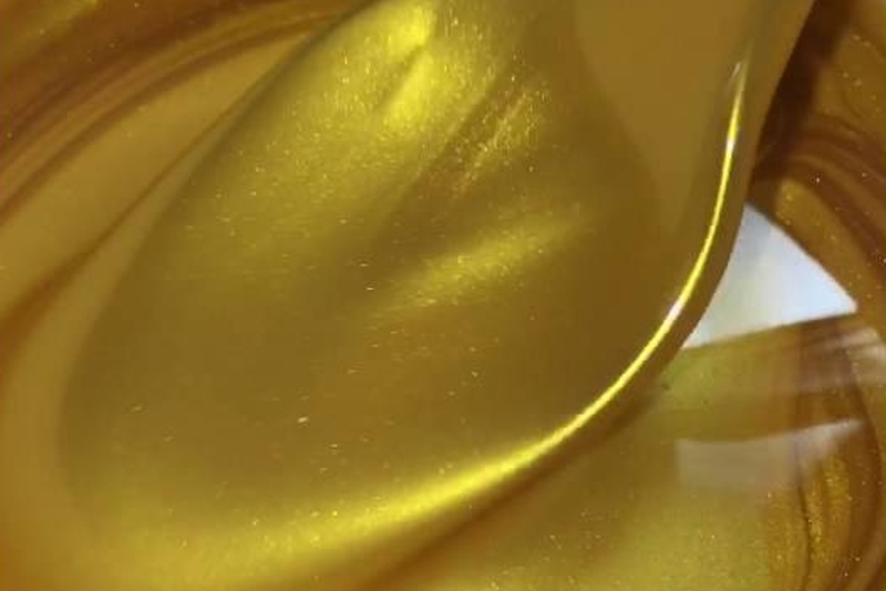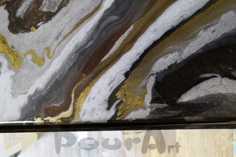 K probarvování pryskyřice jsme zvolili hlinkové prášky, které poskytují přírodní pastelové tóny barev. Zlatých ploch jsme zvolili barvivo do epoxidové pryskyřice v podobě bronzového prášku – prášek do pryskyřice s odstínem zlata. Cely postup najdete v galerii.
