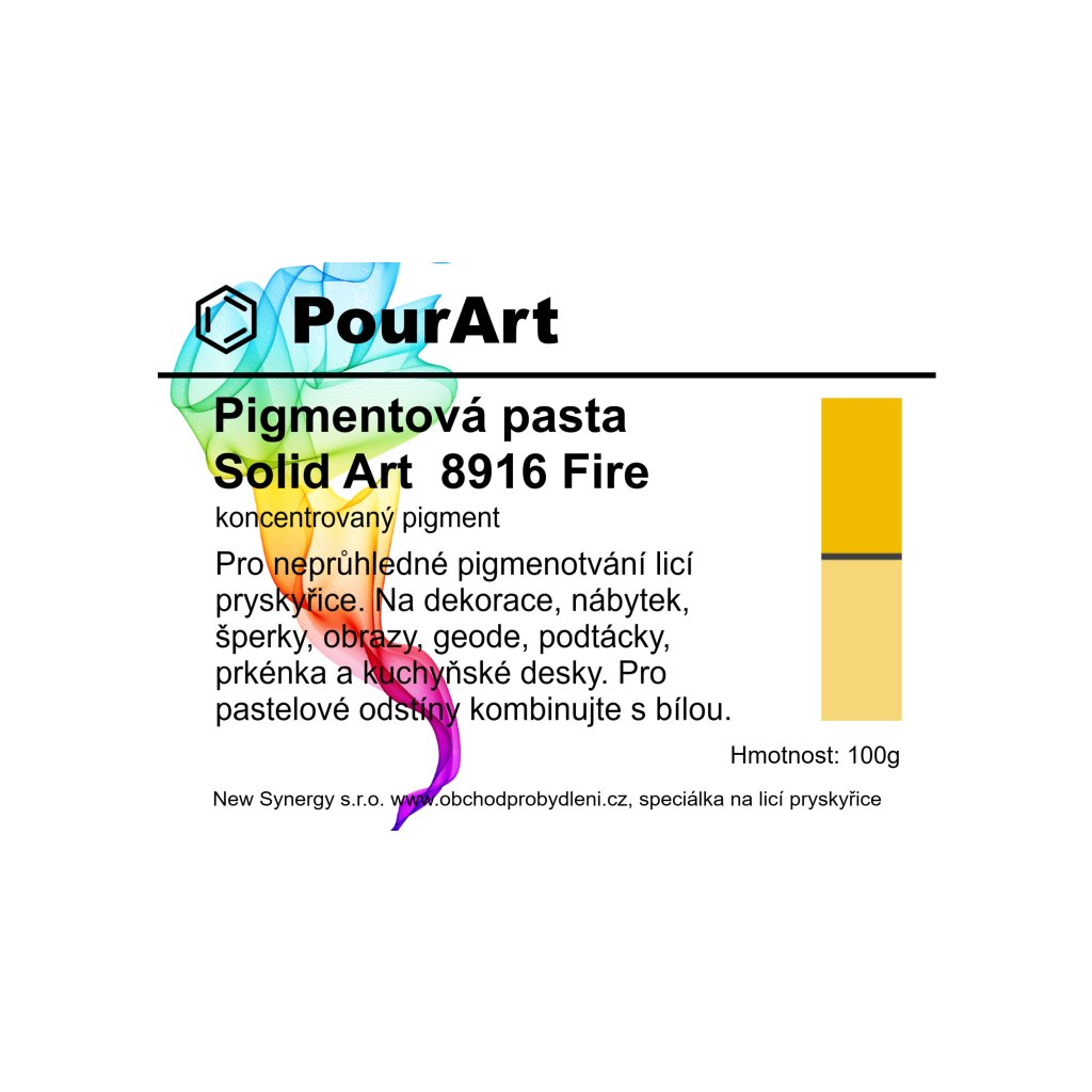 Prémiové pigmentové pasty Solid Art jsou určené pro plné neprůhledné probarvení pryskyřice, známe je též pod označením solid color. Pigmentová pasta je hustá kapalina. Její využití najdeme při výrobě podtácků z pryskyřice, dekorací, obrazů a Geode Art. Své nezastupitelné místo najde i ve velkých aplikacích do truhlářské pryskyřice pro plné syté probarvení velkých objemů pryskyřice. Pro svou hustotu ji snadno použijeme též pro probarvení povrchů, jako třeba na kuchyňských linkách. Barevné pigmenty do epoxidové pryskyřice v podobě pasty lze mezi sebou vzájemně míchat a pro plné probarvení pryskyřice postačuje malé množství.