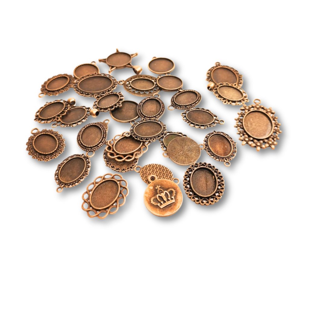 Lůžko na pryskyřici – mix 5 ks je ideální volba, pokud chcete mít po ruce univerzální bronzový základ pro výrobu přívěsků na krk – stačí přidat pryskyřici, trochu dekorací a fantazii.