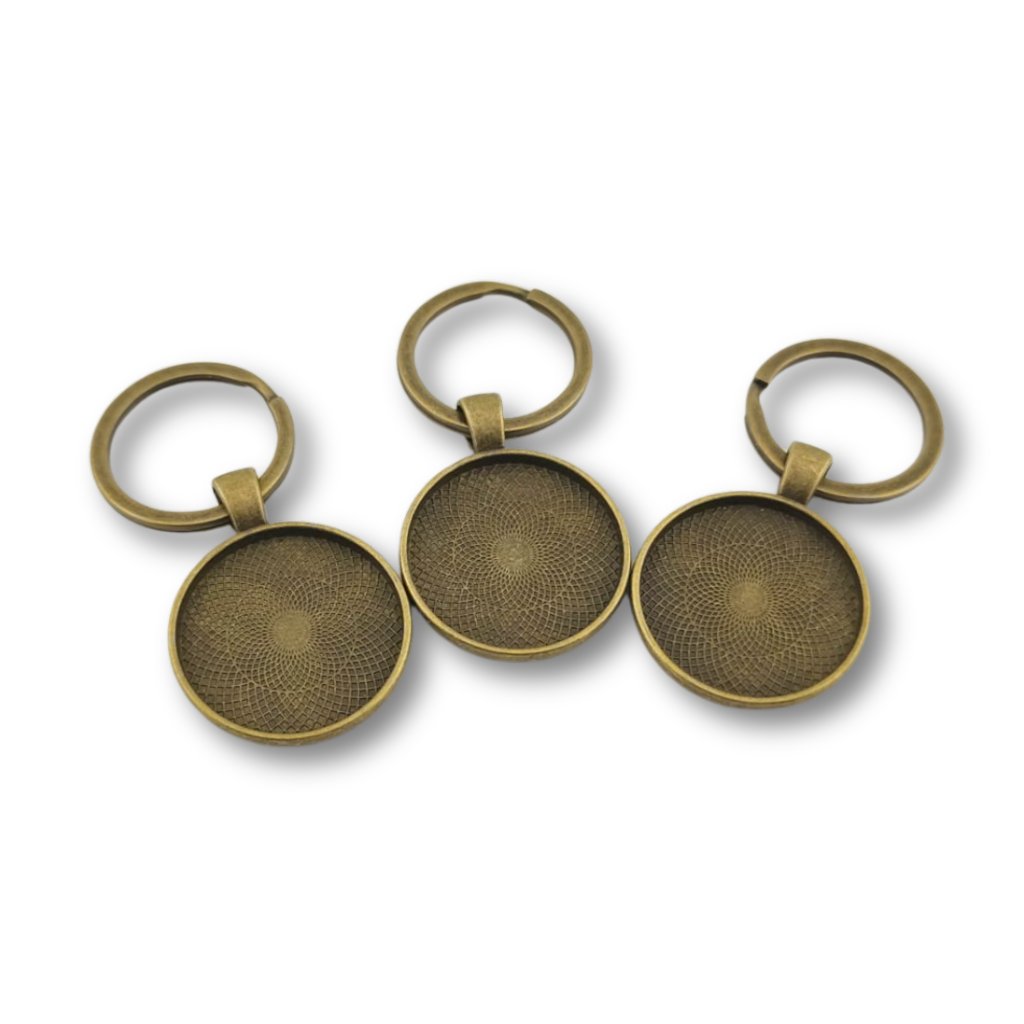 Lůžko na pryskyřici pro výrobu klíčenky – kruh 25 mm, bronz (3 ks)