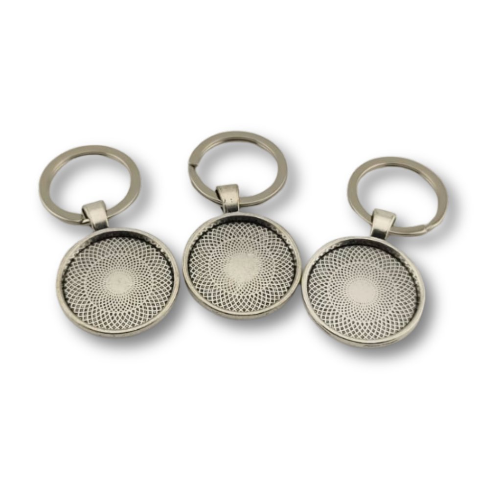 Lůžko na pryskyřici pro výrobu klíčenky – kruh 25 mm, stříbrná (3 ks)