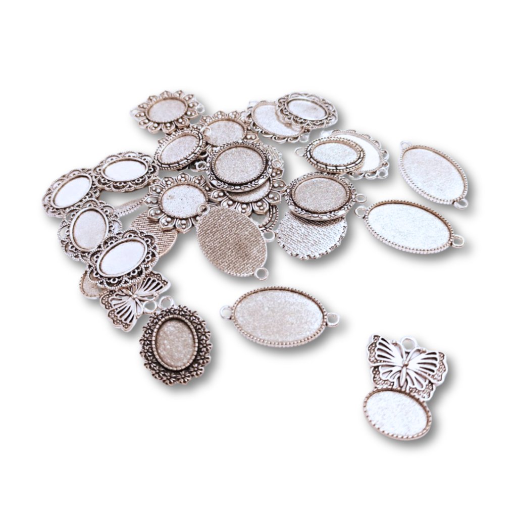 Lůžko na pryskyřici – stříbrné, mix 5 ks je skvělou volbou, pokud hledáte jednoduchý, ale efektní základ pro výrobu přívěsků na krk, které budou vypadat profesionálně a zároveň ponesou váš osobní rukopis.