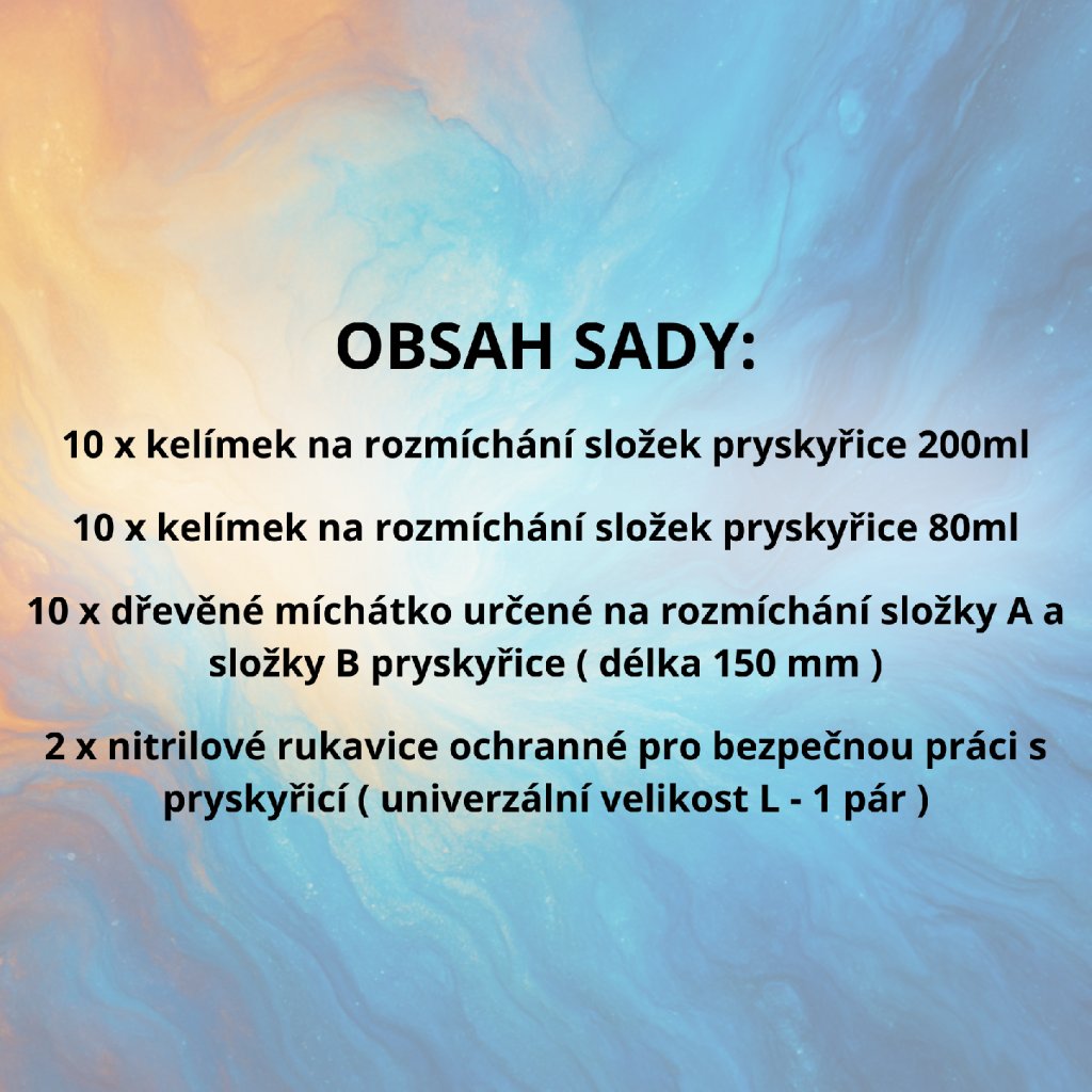 - 10 x kelímek na rozmíchání složek pryskyřice 200ml