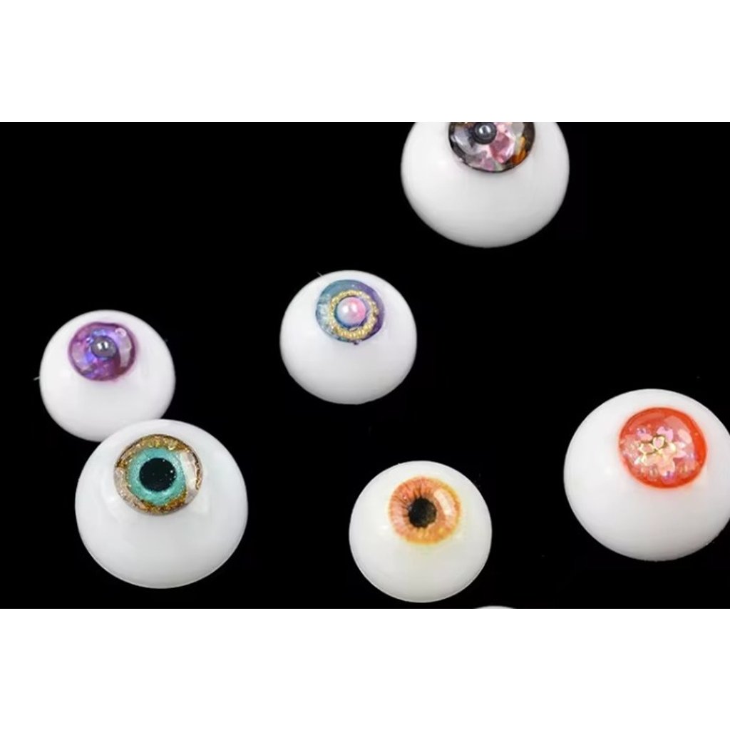 Silikonová forma pro výrobu očí. Nejprve dvousložkovou nebo UV pryskyřicí probarvenou na bílo odlijeme bulvy. Po vytvrzení do jamky lijeme malé množství pryskyřice s požadovaným probarvením tak, aby vnikl kopeček - čočka panenky.