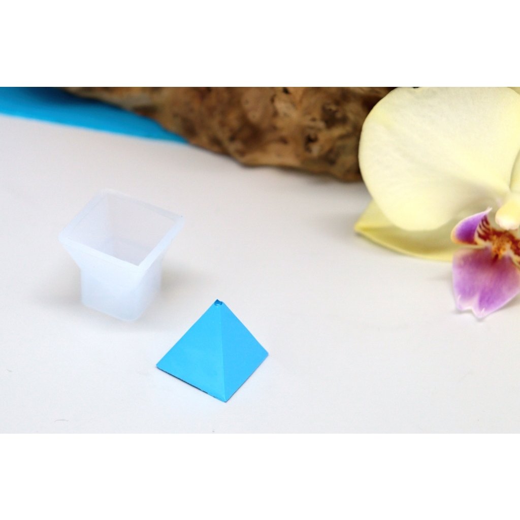 Silikonová forma na výrobu dekorace z pryskyřice nebo orgonitu z pryskyřice - pyramida. Silikonová forma je pružná, výrobek lze po vytvrzení pryskyřice snadno vyloupnout.