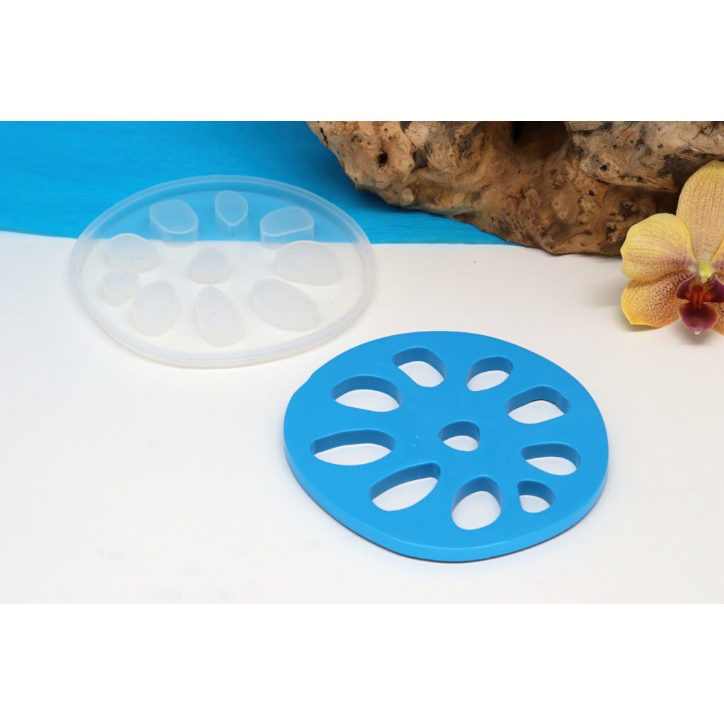 Silikonová forma na podtácek je pružný silikonový materiál, který drží tvar při odlévání a vytvrzený výrobek z pryskyřice jde snadno "vyloupnout".