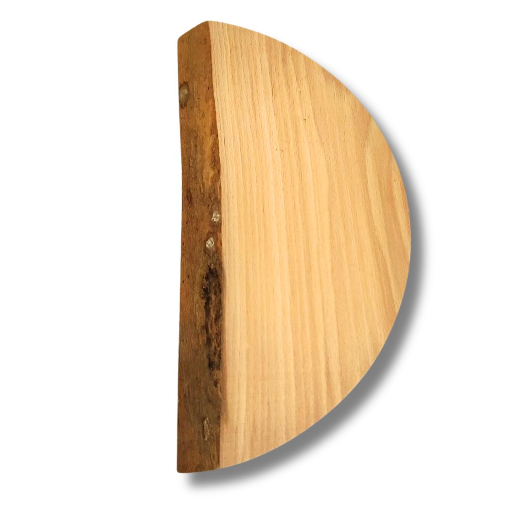 Tento okrajový kruhový výsek v tvare polmesiaca má vonkajší priemer cca 30 cm a je ideálny pre menšie dekorácie. Každý kus je jedinečný – môže mať rovnejší alebo viac prírodný okraj, niekedy aj so zvyškami kôry. Vďaka tomu pôsobí veľmi autenticky a skvele sa hodí na kombináciu s machom, živicou alebo ďalšími prírodninami.