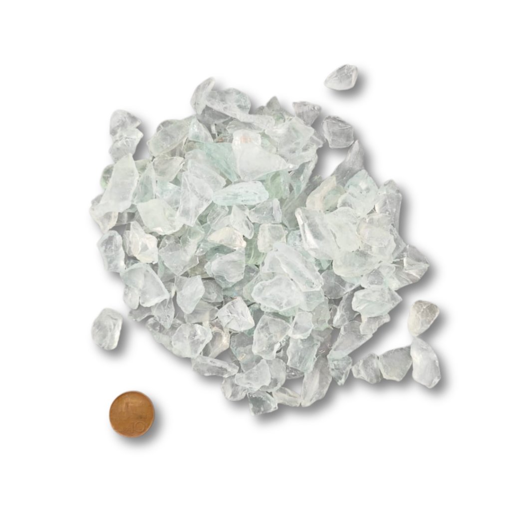 Sklenená drť - Číra - zelený nádych 10-30mm 500g