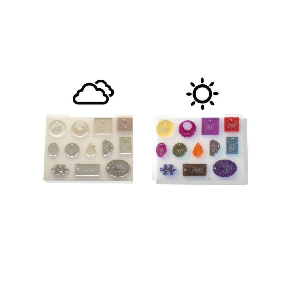 Sluníčkový pigment, fotochromatický pigment, mění svoji barvu na slunci. Při zatažené obloze nebo v místnosti má svoji základní nevýraznou barvu, kterou na sluníčku během krátké chvíle změní. Po návratu na stinné místo se opět během krátké chvilky odbarví. Efekt změny barvy využijete při výrobě především šperků nebo různých dekorací. Pro pigmentaci malých šperků postačuje několik kapek pigmentu.
