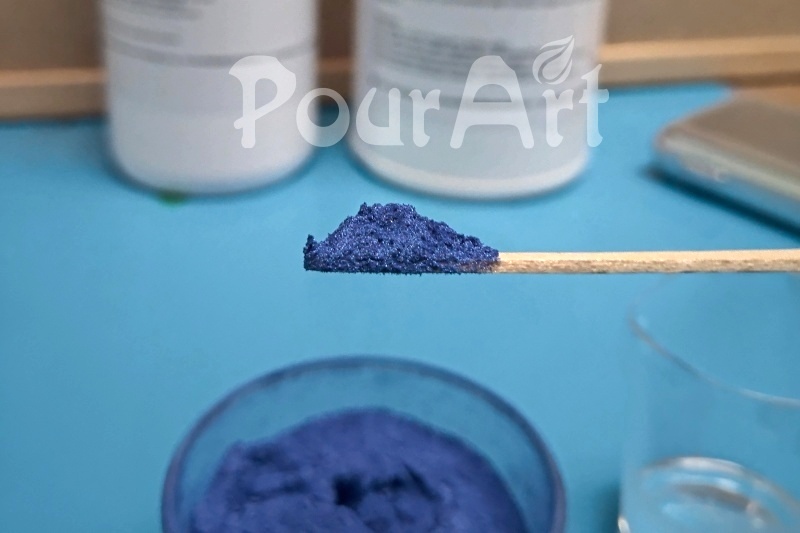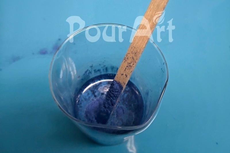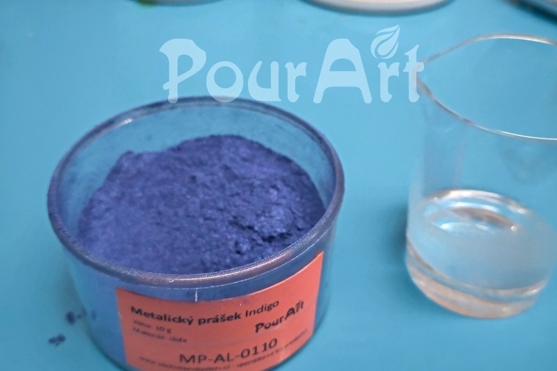 6. Po důkladném promíchání obou složek, cca 2 - 3 minuty, přidáme pigment do epoxidové pryskyřice (metalický prášek) a znovu promícháme.