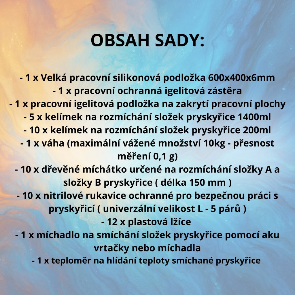 - 5 x kelímek na rozmíchání složek pryskyřice 1400ml