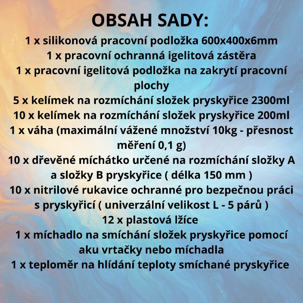 - 5 x kelímek na rozmíchání složek pryskyřice 2300ml