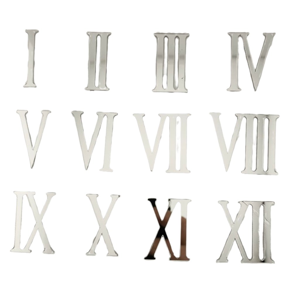 Sada samolepicích zrcadlových čísel ve stříbrném provedení je skvělou volbou pro všechny, kteří chtějí svým hodinám dodat čistý, elegantní a nadčasový vzhled. Stříbrná římská čísla krásně kontrastují s tmavým dřevem, černými podklady, barevnou pryskyřicí i mechovými motivy.