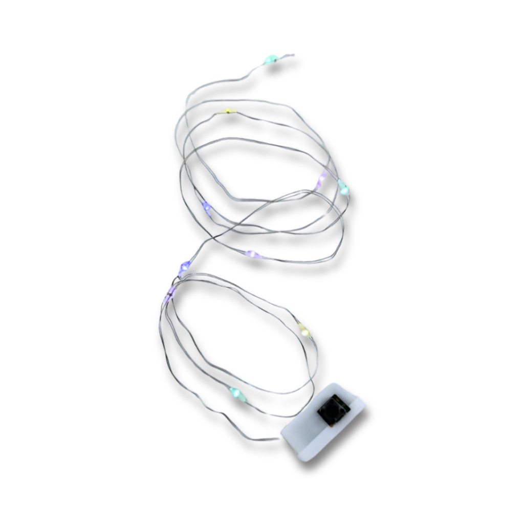 LED světlo – barevné – 1000 mm je dekorativní světelný drátek s 10 barevnými LED diodami rovnoměrně rozmístěnými po délce 1 m. Každá LED má pevně danou barvu, ale můžete si zvolit dva režimy – buď světýlka trvale svítí, nebo blikají.